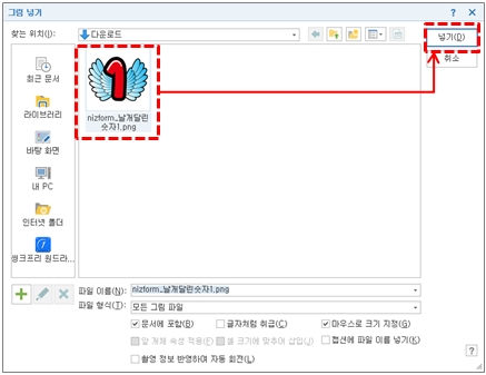 ③ [그림 넣기] 창에서 다운로드 한 클립아트 이미지 선택 후, [넣기]를 클릭합니다.