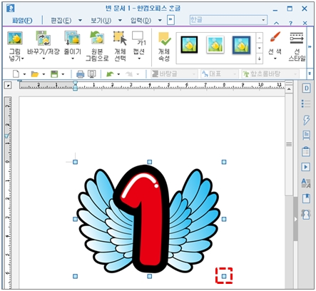 ⑤ 크기 조절은 클립아트 이미지를 클릭 후, 테두리에 표시된 기호(
