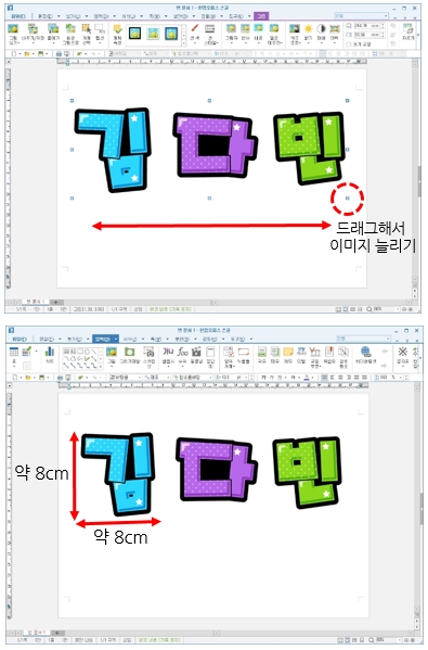 이때 한 글자의 크기는 약 8cm입니다.