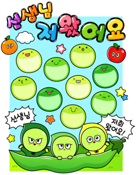 다양한 표정의 완두콩 출석판 도안을