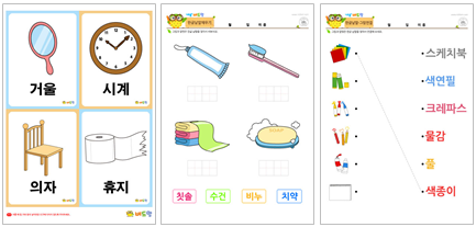 생활도구와 한글 낱말이 연결되게 도와주는