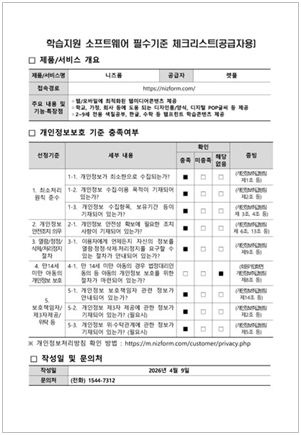 학습지원 소프트웨어 필수기준 체크리스트를