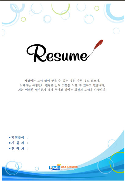 본 콘텐츠는 니즈폼(www.nizform.com)을 통해 서비스되는 이력서표지(파란색원)(으)로서, 다운로드 받으신 후, 내용을 수정하거나 입력하여 사용하시면 됩니다.
