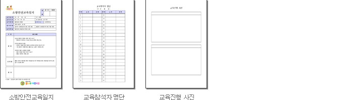 본 안전교육일지에는 크게 안전교육일지, 안전교육참여자명단, 교육진행사진 등 총 3장으로 구성 되어 있습니다.