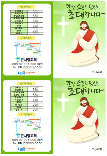 본 서식은 니즈폼(www.nizform.com)을 통해 서비스되는 일반교회전도지(복음,기도하는예수님)(A4용지 4면)(으)로서, 다운로드 받으신 후, 내용을 수정하거나 입력하여 사용하시면 됩니다.