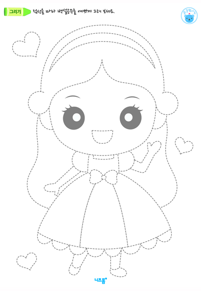 점선을 연결하여 백설공주를 예쁘게 완성해 보세요^^