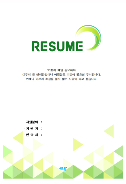 본 콘텐츠는 니즈폼(www.nizform.com)을 통해 서비스되는 이력서표지(초록색패턴)(으)로서, 다운로드 받으신 후, 내용을 수정하거나 입력하여 사용하시면 됩니다.