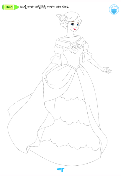 점선을 연결하여 백설공주를 예쁘게 완성해 보세요^^