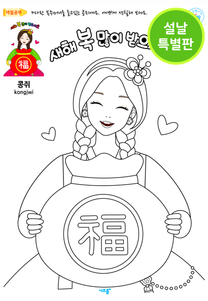 본 콘텐츠는 니즈폼(www.nizform.com)을 통해 서비스되는 색칠공부(복주머니들고있는콩쥐)(으)로서, 프린트하여 사용하시면 됩니다.