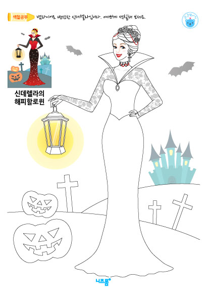 본 콘텐츠는 니즈폼(www.nizform.com)을 통해 서비스되는 공주들의해피할로윈색칠공부(신데렐라)(으)로서, 프린트하여 사용하시면 됩니다.