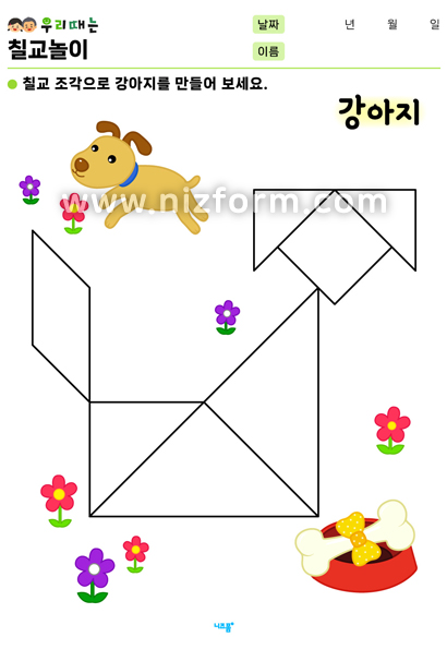 본 콘텐츠는 니즈폼(www.nizform.com)을 통해 서비스되는 칠교놀이(강아지)(으)로서, 프린트하여 사용하시면 됩니다.