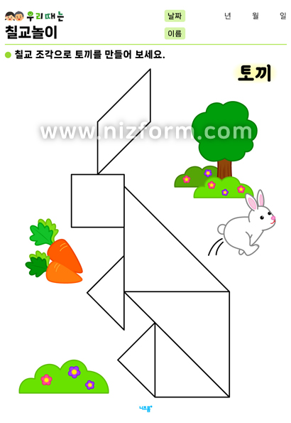 본 콘텐츠는 니즈폼(www.nizform.com)을 통해 서비스되는 칠교놀이(토끼)(으)로서, 프린트하여 사용하시면 됩니다.