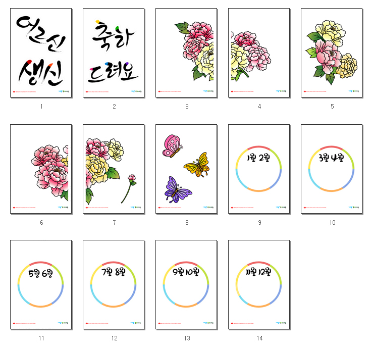 본 콘텐츠는 니즈폼(www.nizform.com)을 통해 서비스되는 생일판(모란꽃과나비)(2절지)(으)로서, 일반(A4) 프린터로 프린트하여 오린 뒤 2절지에 붙여 완성하시면 됩니다.