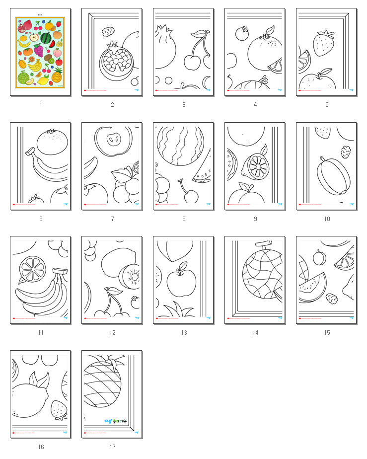 본 콘텐츠는 니즈폼(www.nizform.com)을 통해 서비스되는 협동화색칠하기(과일)(전지)(으)로서, 프린트한 후 색연필이나 크레파스 등 다양한 도구를 이용하여 색칠하시면 됩니다.