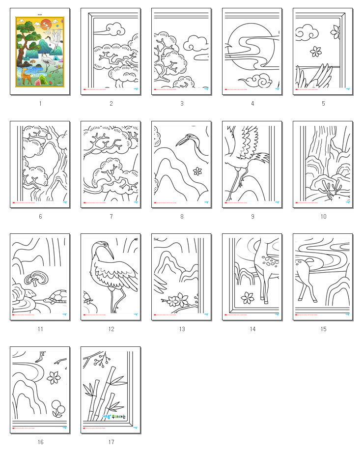 본 콘텐츠는 니즈폼(www.nizform.com)을 통해 서비스되는 협동화색칠하기(십장생)(전지)(으)로서, 프린트한 후 색연필이나 크레파스 등 다양한 도구를 이용하여 색칠하시면 됩니다.